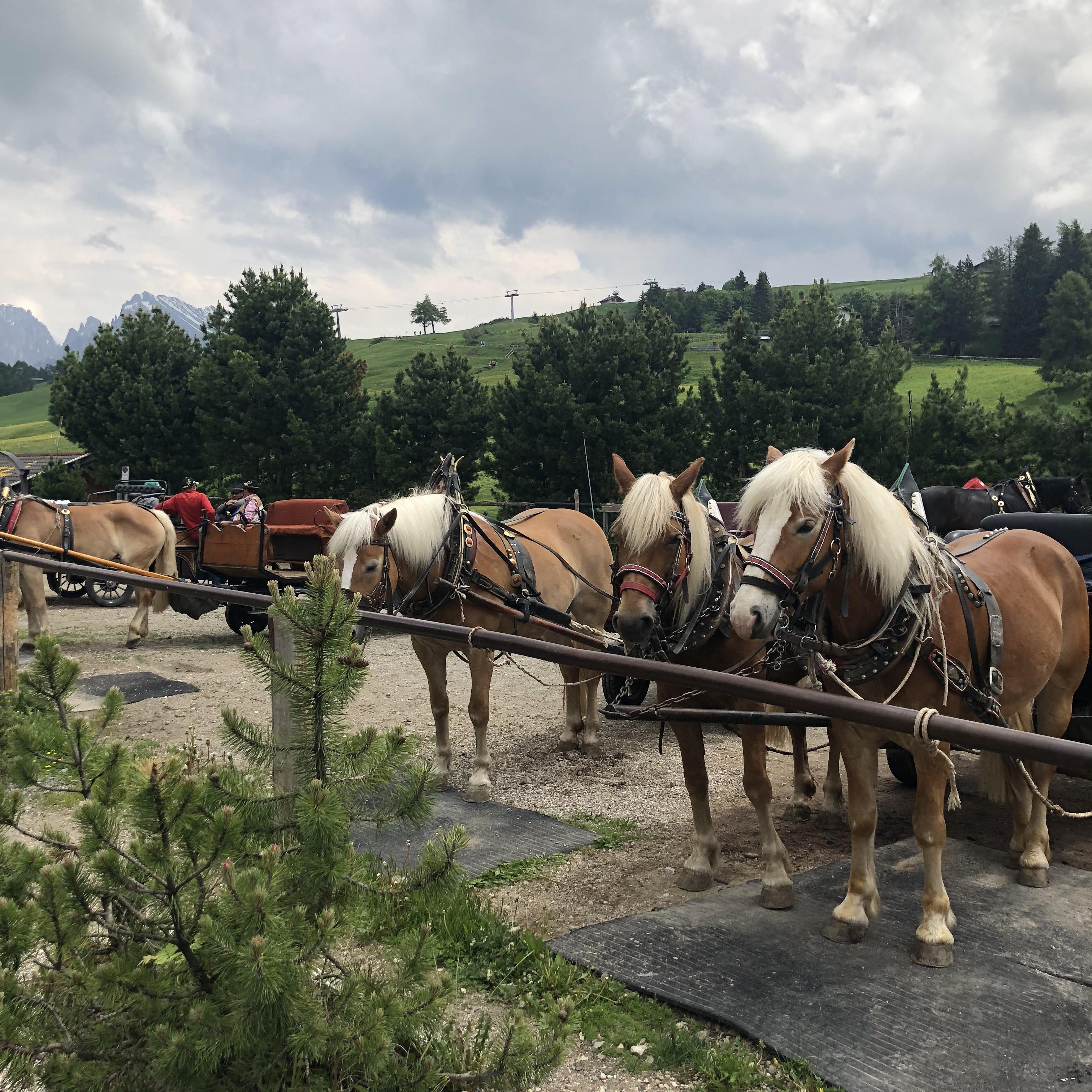 돌로미티에서 또 하나의 운송수단인 마차가 움직이는 것도 보인다.